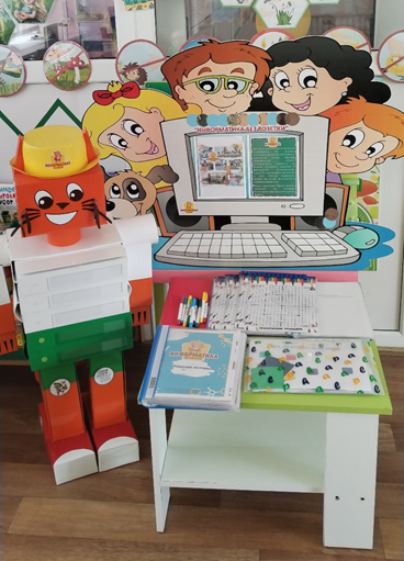 Информатика без розетки – это наличие брендовой атрибутики во всем: у детей есть своя форма одежды, учебные принадлежности, рюкзаки, на этапе рефлексии используются нестандартные карты самооценки с наклейками котят с разным эмоциональным выражением мордочек, свой дидактический учебный материал. Данная особенность позволяет достигать неповторимое своеобразие занятий, мотивирует и сплачивает группы детей и педагогов.