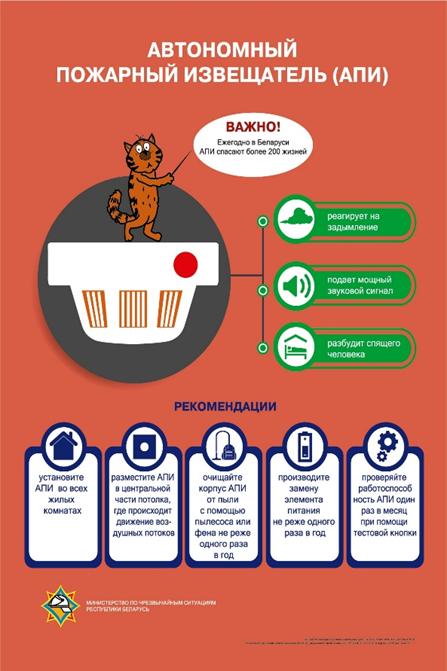 С 2004 года, согласно строительным нормам Республики Беларусь, жилые комнаты домов и агроусадеб необходимо оборудовать АПИ, которые предназначены для автоматического обнаружения пожара (задымления) и оповещения о нем.