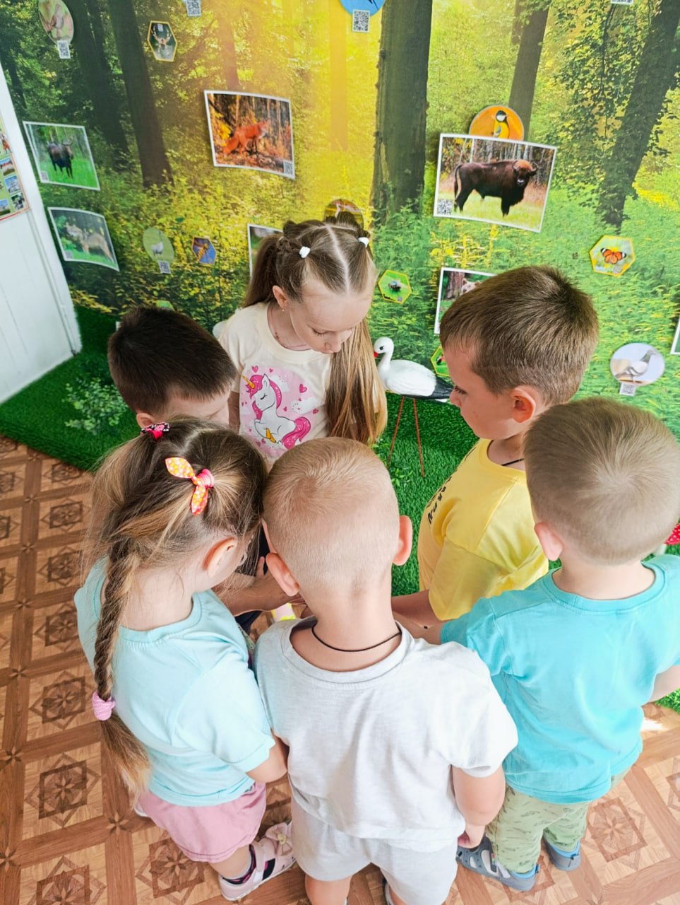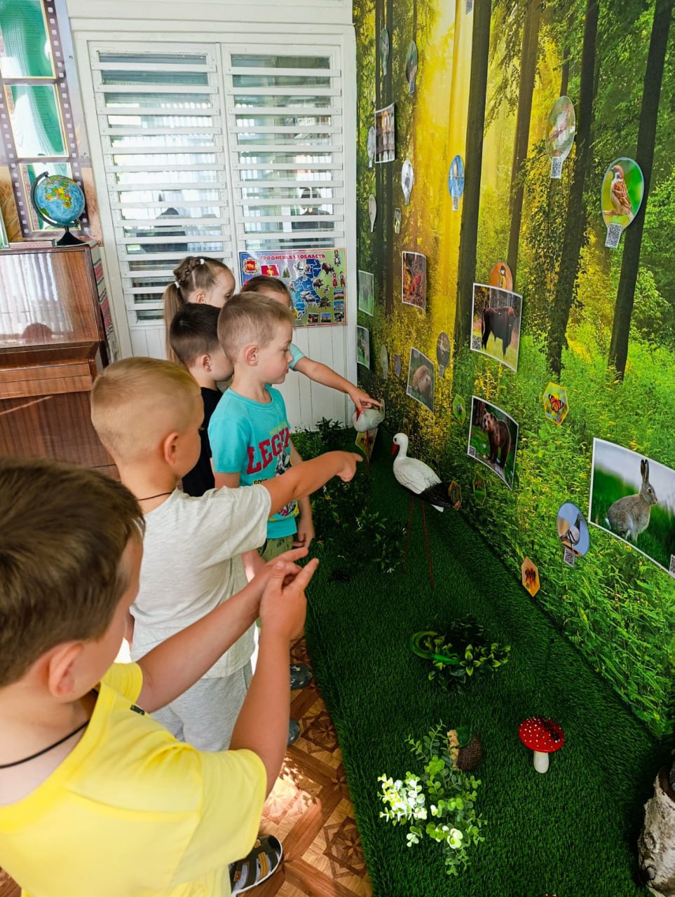 Переступая порог, дети попадают в настоящую сказку, где их встречают волшебные деревья с шелестящей листвой и веселые птички, звонко распевающие свои трели. Здесь можно увидеть макеты белорусских лесов и полей, а также воссозданные сценки из жизни животных: от игривого зайчика до мудрого зубра .