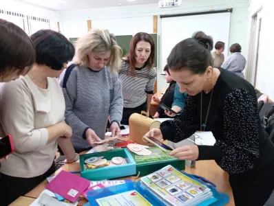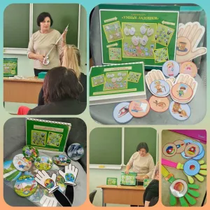 Коневега Валентина Алексеевна, воспитатель дошкольного образования, ГУО "Специальный детский сад г.Слонима", приняла участие в заседании клуба ПИК ТРИЗ, презентовала развивающую игру "Умные ладошки", целью которой является развитие у детей чувствительности к противоречиям. Данная игра способствует формированию навыка дифференциации предметов (объектов), явлений, по визуальным признакам, умению сопоставлять пары противоположные по значению, обосновывать свой выбор, разрешать ситуацию. Продемонстрировала варианты работы с пособием.