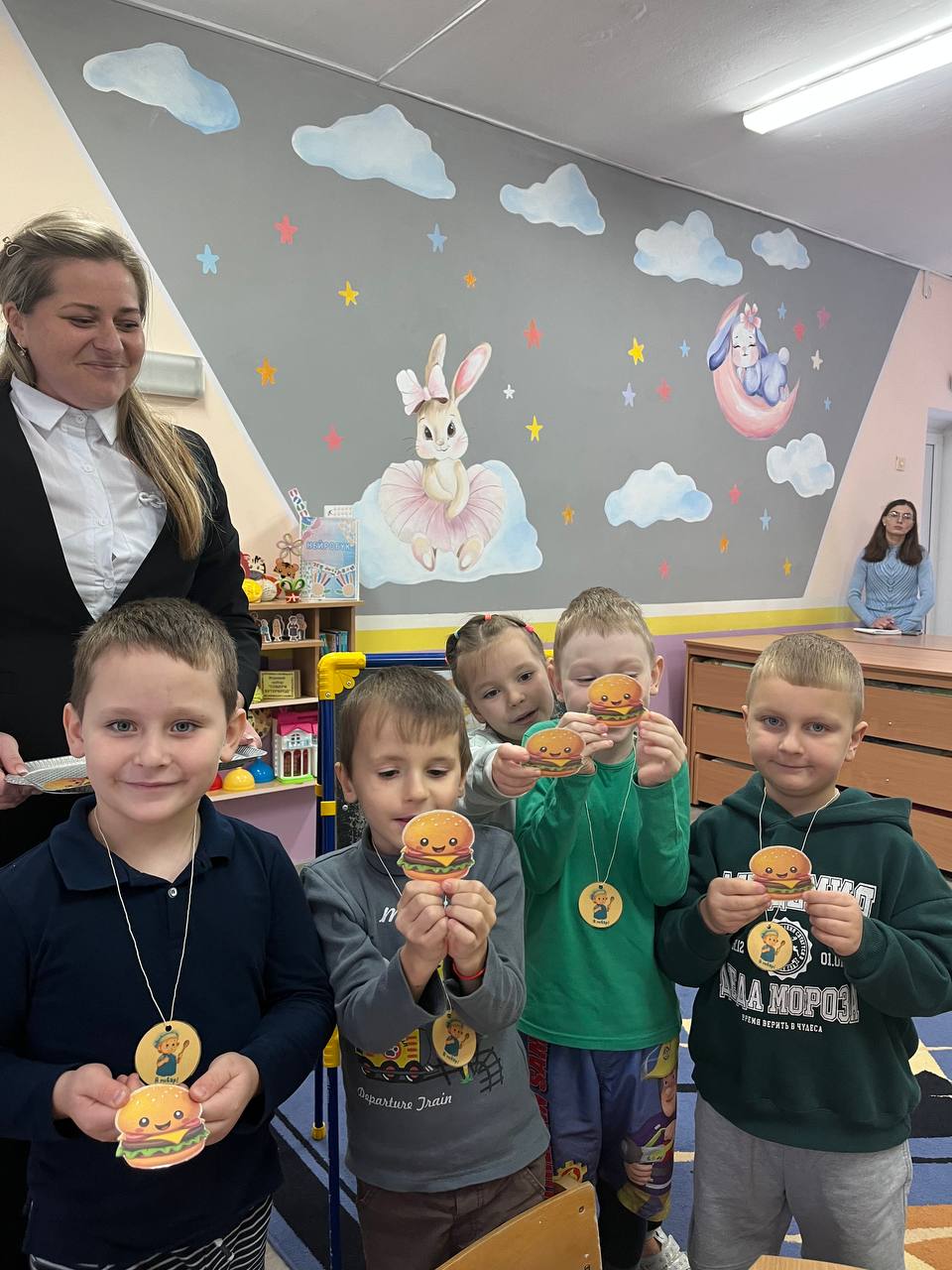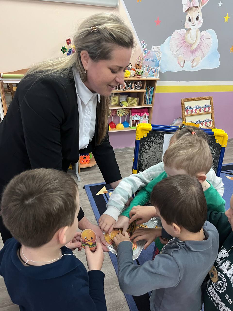 Верта пригласила в гости фиксиков Нолика и Симку, а чем угостить их не знала. Наши ребята с радостью научили Верту делать артикуляционную гимнатику (упражнения " Бублик", "Месим тесто"," Блинчик"," Вкусное варенье"), а также подсказали Верте, какую кашу, варенье и сок можно приготовить для гостей. Вместе с Вертой дружно отправились в продуктовый магазин за молочными, мучными и мясными продуктами. После наши ребята с большим энтузиазмом помогли Верте приготовить бургер для гостей. На память о занятии ребята получили медали "Лучший повар".