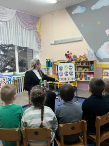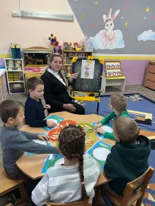 Сегодня прошёл открытый просмотр занятия по образовательной области "Развитие речи" в группе "Цветничок" ГУО "Специальный детский сад г. Слонима" в "Волшебные ворота" вместе с ребятами забежала фиксик Верта.