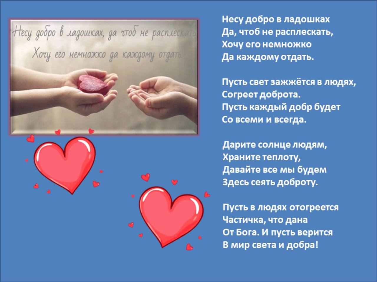Тематическое занятие "Несу добро в ладошках или ты не один"