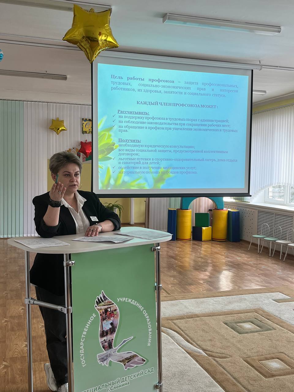 19 февраля в ППО ГУО «Специальный детский сад г.Слонима» прошло отчётное профсоюзное собрание, на которое была приглашена председатель Слонимской районной организации Белорусского профессионального союза работников образования и науки Наталья Николаевна Фидрик.