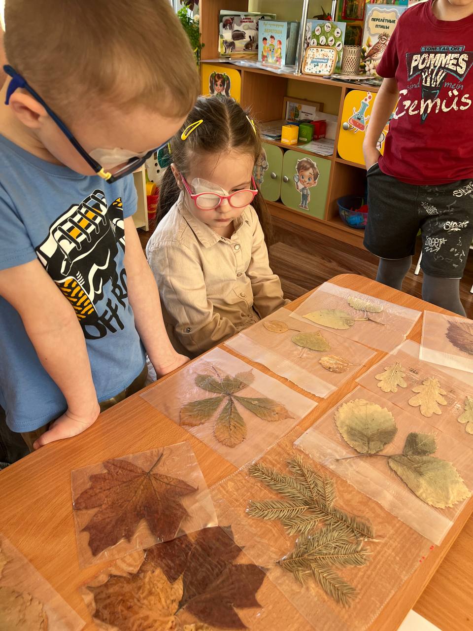 Рассматривали гербарий из листьев — изучали разнообразие форм и оттенков.