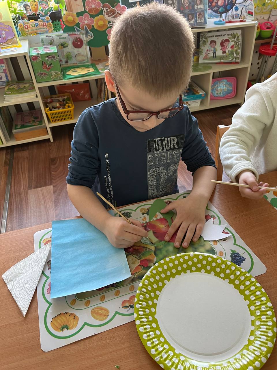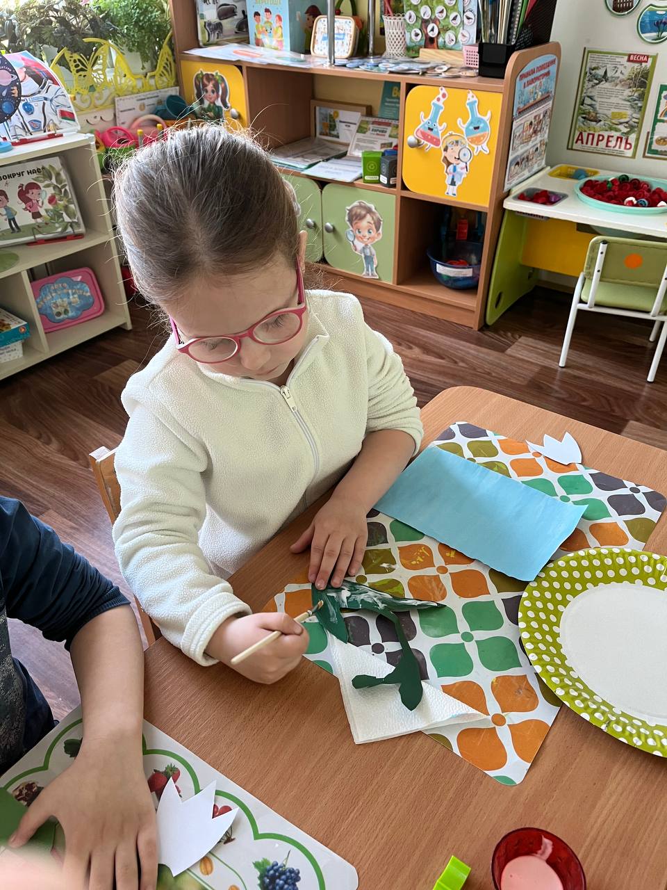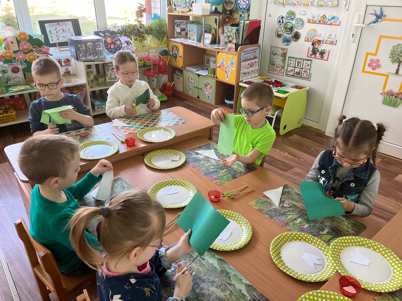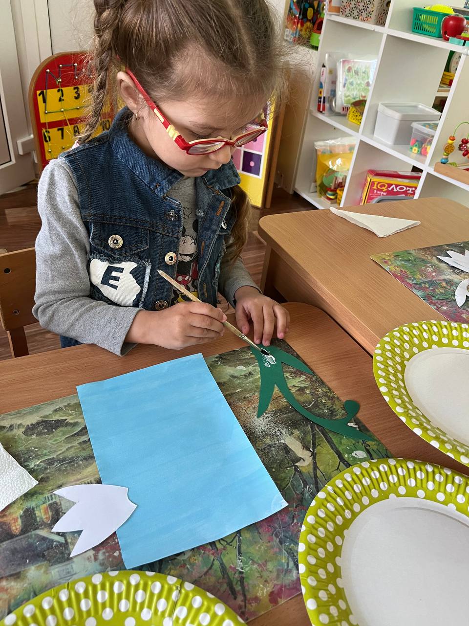 Ребята дружно вырезали, аккуратно клеили и вкладывали частичку души в каждый лепесток. Дети очень старались — ведь подснежник стал для них символом надежды, нежности и весеннего чуда!